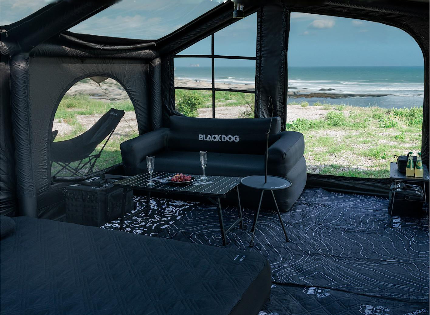 BLACKDOG Black Automatic Inflate Lazy Sofa Portable Auto Inflating Sleeping Bed Built-in Electric 2000mAh Detachable Air Pump Outdoor 150kg Max Load