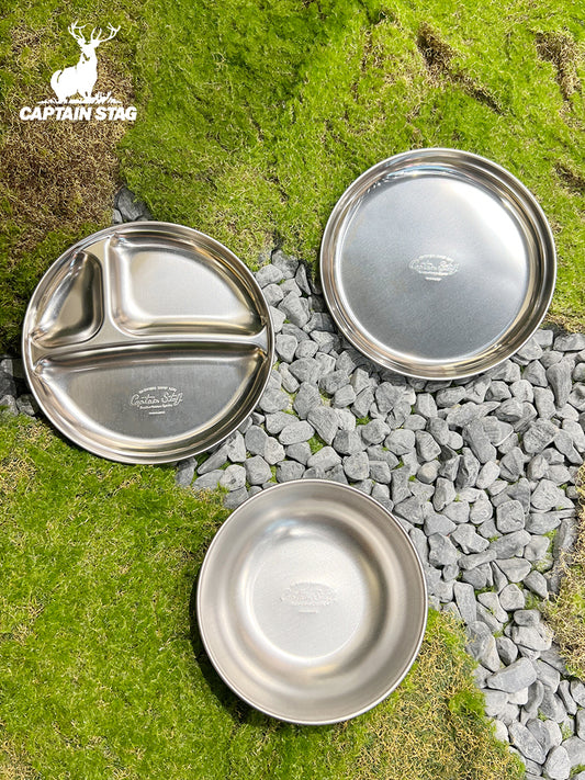 CAPTAIN STAG UW-2024/26/27 Tableware Plate Portable Stainless Steel Dining Split Plate Dish Outdoor Camping Utensil Rust Resistant Made in Japan