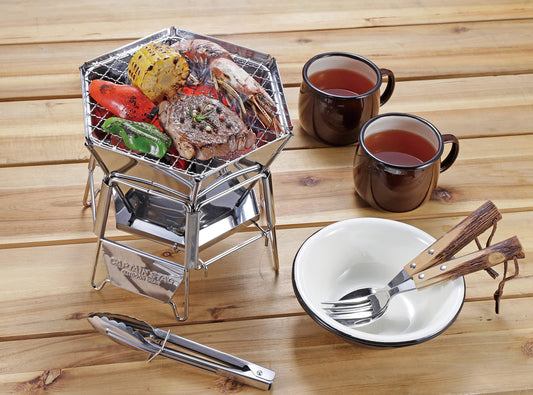 CAPTAIN STAG UG-0094 Hexa Tabletop Grill Small Foldable Stainless Steel Hexagonal Grill Charcoal Firewood Folding BBQ Burner Stove
