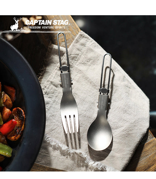 CAPTAIN STAG TITAN Cutlery Portable Ultralight Foldable Titanium Utensils Folding Spoon Fork Spork Chopstick Tableware Kitchenware Cookware Equipment