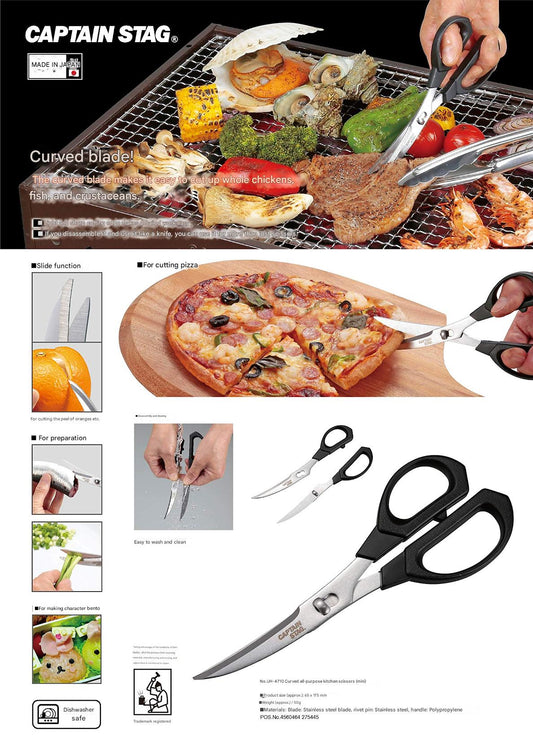 CAPTAIN STAG UH-4710 Curved Kitchen Scissor Portable Versatile BBQ Curve All Purpose Knife Scissors Can Be Disassemble Outdoor Camping