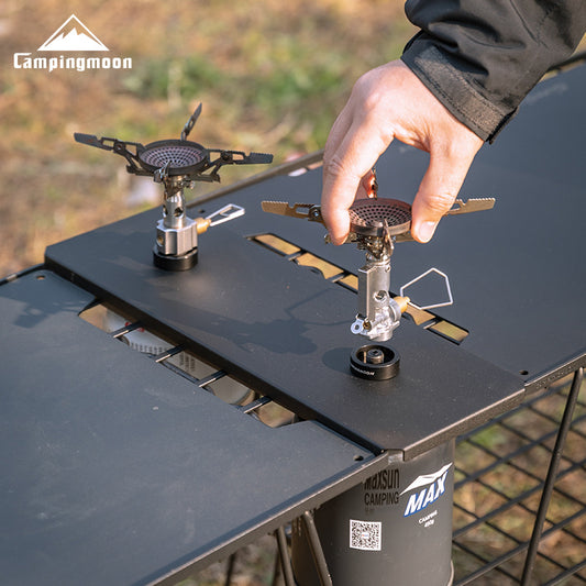 Campingmoon BKZ06 Dual Stove Bracket Mount IGT Compatible Black Double Threaded Butane Gas Canister Burner Half Unit Integrated Grill Table Plate