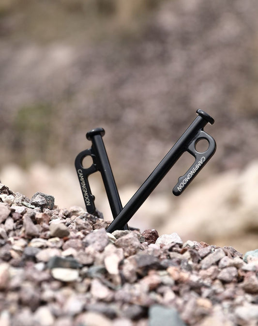 CAMPINGMOON Black Carbon Steel Peg Stakes Pack of 6pcs or 8pcs 20cm 30cm 40cm Length Outdoor Camping Ground Nail Tent Wind Rope Line Pegs Stakes Set Lot Camping Moon Heavy Duty Original Metal Nails