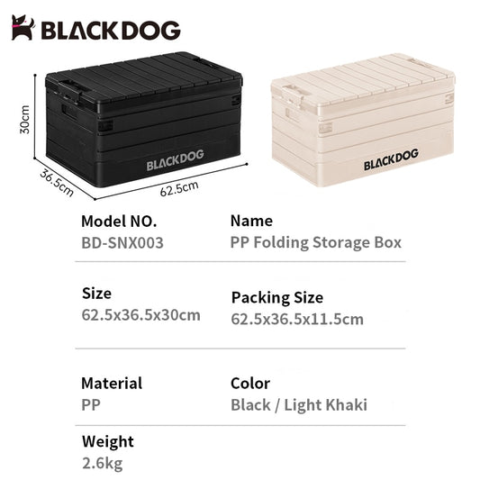 BLACKDOG PP Foldable Storage Box Portable 60L Capacity Collapsible Camping Container Outdoor With Tabletop Board Hiking Picnic Beach Travel Heavy Duty Original Black Dog