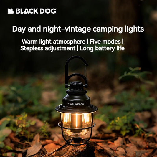 BLACKDOG Rechargeable Camping Lamp Outdoor Portable Ultralight Multi-Function Emergency Atmosphere Light Tent Retro Hanging Lantern Waterproof Hiking Picnic Travel Heavy Duty Original Black Dog