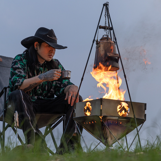 Campingmoon MS-105-BK MS-080-BK Hanging Pot Tripod Bracket Outdoor Portable Lightweight Three-Section Detachable Barbeque Rack Cookware Utensil