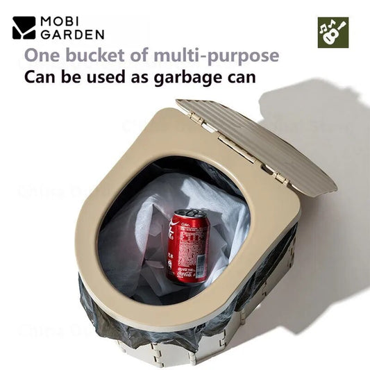 MOBI GARDEN Portable D-Type Outdoor Adult Toilet Camping Beach Travel Car Integrated Mount Arc Shape Emergency Foldable Toilet Folding Trash Can Free Garbage Bag ABS Material Original MobiGarden