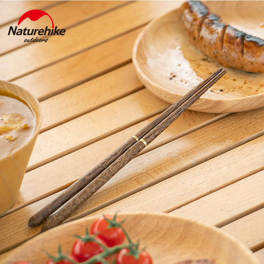 Naturehike Camping Chopsticks Solid Wooden and Stainless Steel 2 Section Wood Chop Stick Reusable Outdoor Chopstick with Case Tableware Utensil