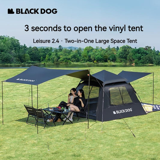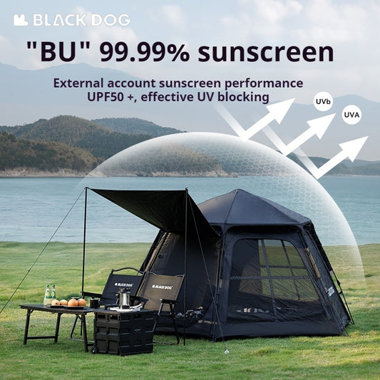 BLACKDOG BLACK Automatic Tent Outdoor Camping 3-4 Persons Portable Dome Tent Quick Opening Black Coating Vinyl Sunproof Waterproof Large Space Tent