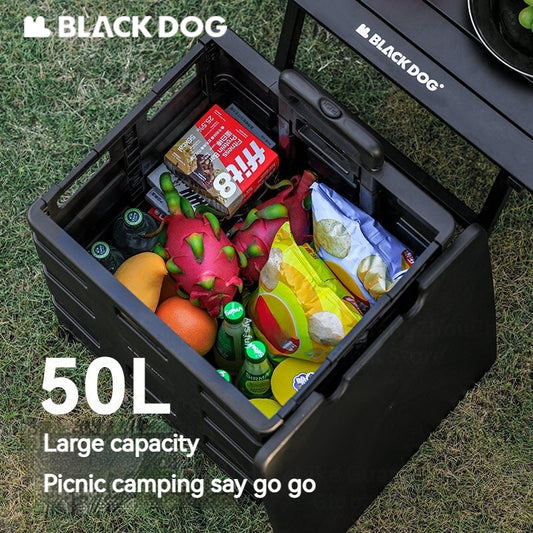 BLACKDOG PP Foldable Storage Box Portable 60L Capacity Collapsible Camping Container Outdoor With Tabletop Board Hiking Picnic Beach Travel Heavy Duty Original Black Dog