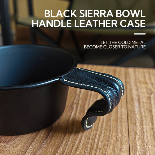 CAMPINGMOON BKS-PT S-PT Leather Sierra Cup Bowl Handle Portable Black Cowhide Cover Holster Heat Resistant Case Camping Hanging Shera Tableware