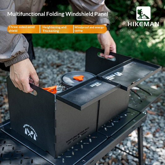 Hikeman Desktop Wind Deflector Windshield Black Steel Iron 2 Unit IGT Compatible Integrated Grill Table Cooking Stove Kitchen Accessories Outdoor Camping
