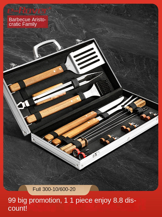 Redfox E-Rover 18pcs BBQ Tool Set Multifunctional Barbecue Grill Utensil Spatula Tong Clip Skewer Knife With Elegant Case Outdoor Camping Cooking Accessories