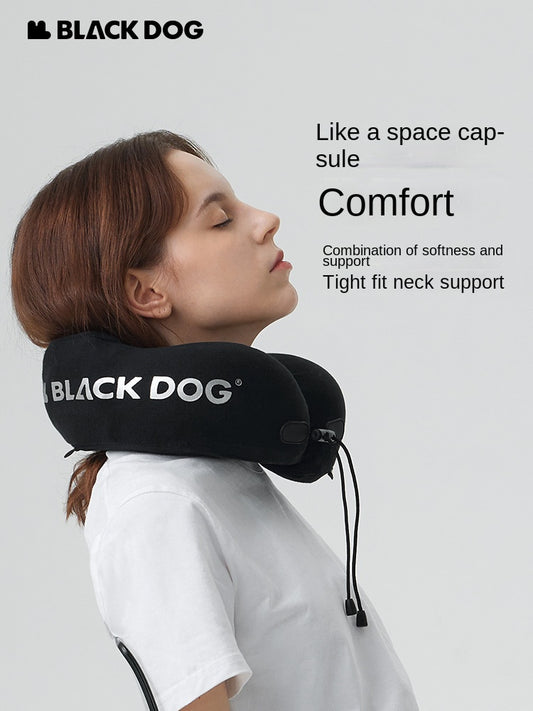 BLACKDOG SNAIL U-Shaped Hooded Memory Foam Black Travel Pillow Comfortable Snug Fit 360° Wrap Design Portable Neck Support Hood Head Cover Headrest with Storage Bag Black Dog