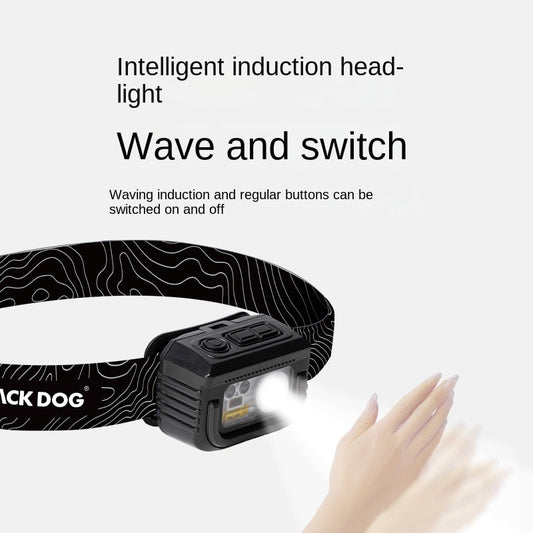 BLACKDOG WILD Multifunctional Induction Sensor Headlamp USB Charging Rechargeable Black Head Lamp Light IPX5 Waterproof Original Heavy Duty Black Dog