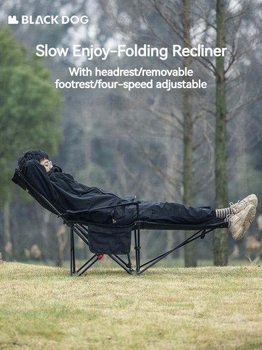 BLACKDOG Foldable Recliner Camping Chair Portable Lunch Break Balcony Home Leisure Sitting And Sleeping Chair With Pillow 4-Speed Adjustable Dual-Use Nap Lazy Outdoor Beach Chair Black Dog