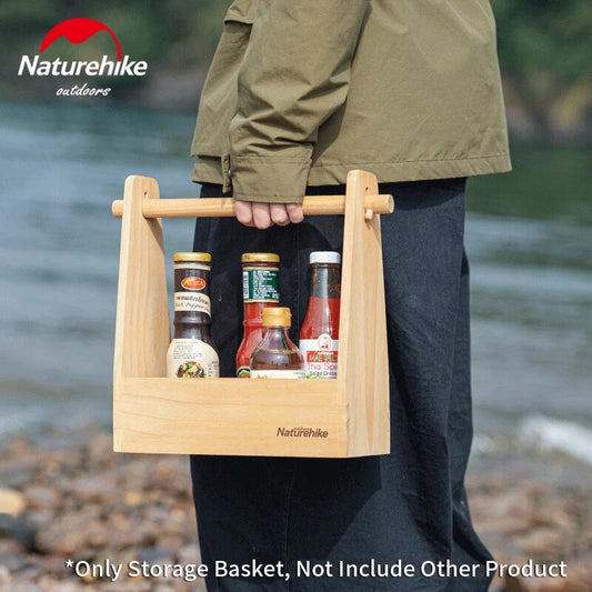 Naturehike Outdoor Wooden Storage Basket Camping Bbq Kitchen Equipment Paper Towel Tissue Condiments Rack Shelf Seasoning Sauce Box Sundry Storage