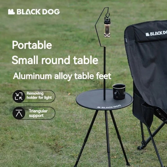 BLACKDOG Black Round Table Portable Aluminum Alloy Tea Coffee Table with Lamp Light Pole Post Stand Holder Portable Ultralight Adjustable Height