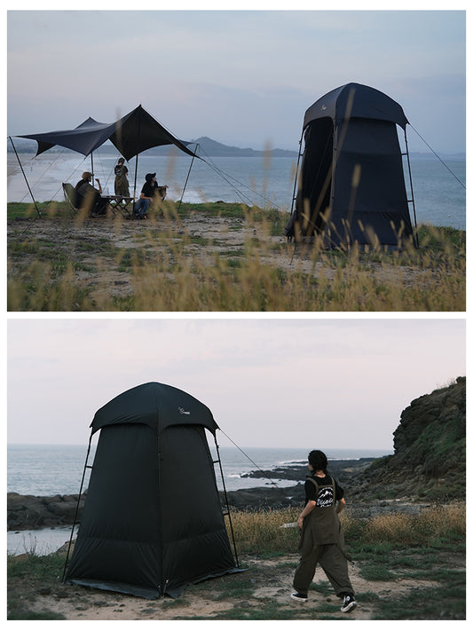 Vidalido Black Shower Changing Outdoor Camping Beach Fishing Bath Toilet Tent Waterproof Windproof Portable Outdoor Dresser Privacy Tent Silver Coated Sunscreen Stable Steel Iron Poles