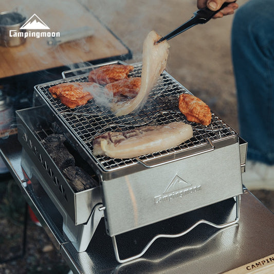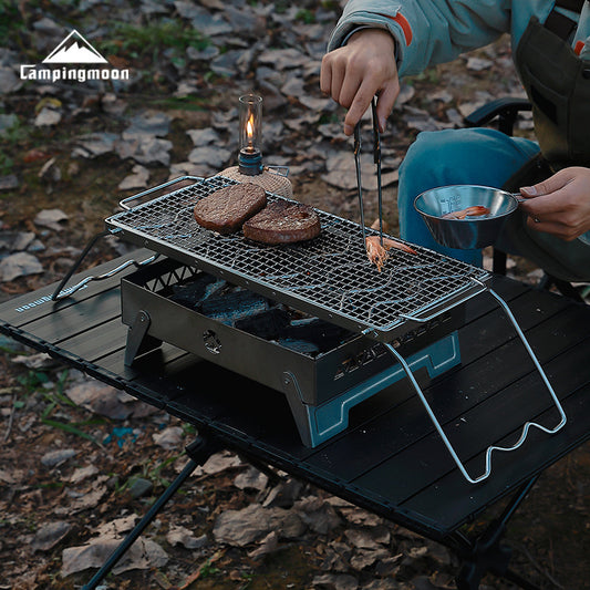 CAMPINGMOON MSW-1012 MSW-1015 Folding Grill Stove Net Rack Stand Foldable BBQ Charcoal Butane Mount Bracket 304 Stainless Steel with Storage Bag