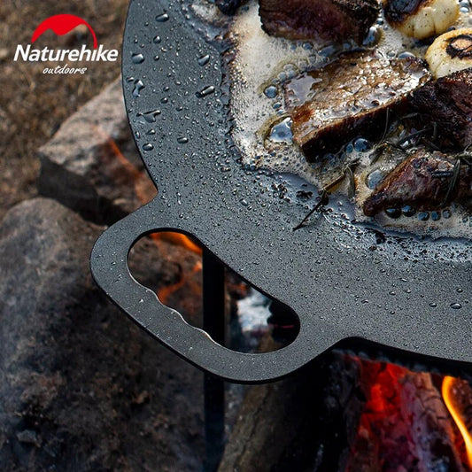 Naturehike Large Baking Cooking Pan Non-Stick High Round Square Tripod Stand Stove Grill Top Frying Pan Korean BBQ Grilling Cast Iron with Storage Bag