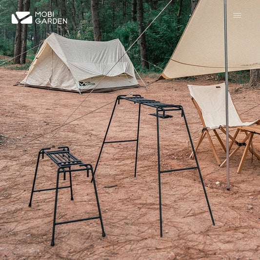 Mobi Garden Cast Iron Outdoor BBQ Hanging Pot Cookware Kitchenware Utensil Rack Large Shelf Camping Multifunctional Grill Cooking Barbecue Shelves Portable Foldable Folding Storage Design Mobigarden