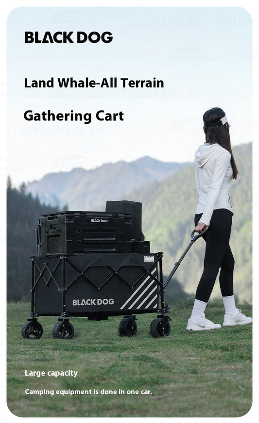BLACKDOG LAND WHALE Camping Cart Portable Foldable Multipurpose Hand Pull Black Wagon All Terrain Gathering Storage Cart 320L Large Capacity Detachable Wheel