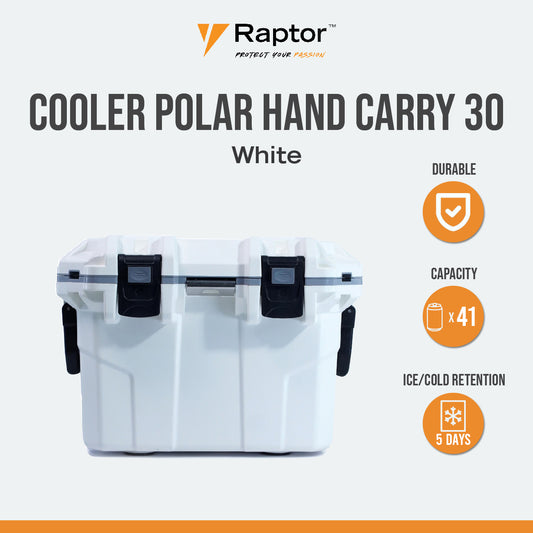 Raptor POLAR Series Cooler Hand Carry Multipurpose 30L Capacity Cold Storage Ice Box Food Container Chest Sloped Drain with Secure Plug Non-Skid Rubber Feet