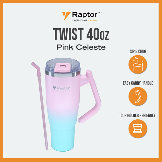 Raptor TWIST 40oz Tumbler Unique Rotating Handle Double-Wall Vacuum Insulation Cup Holder-Friendly Design Rust-Resistant Durability Drinkware