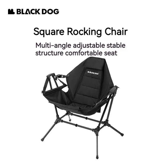 BLACKDOG Folding Black Rocking Swing Chair with Pillow 160° Portable Adjustable Lying Leisure Recliner 150kg Max Load Camping Hiking Travel Chair