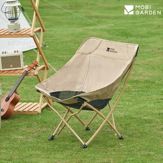 MOBI GARDEN Foldable Moon Chair Outdoor Portable Ultralight Lounger Backrest Fishing Stool Director Folding Chair Indoor Outdoor Camping Hiking Picnic Travel Heavy Duty Original MobiGarden