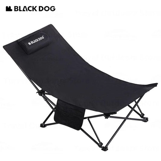 BLACKDOG Black Foldable Camping Lounger Portable Leisure Chair and Bed 2 in 1 Reclining Removable Headrest Pillow Folding Office Balcony Chair