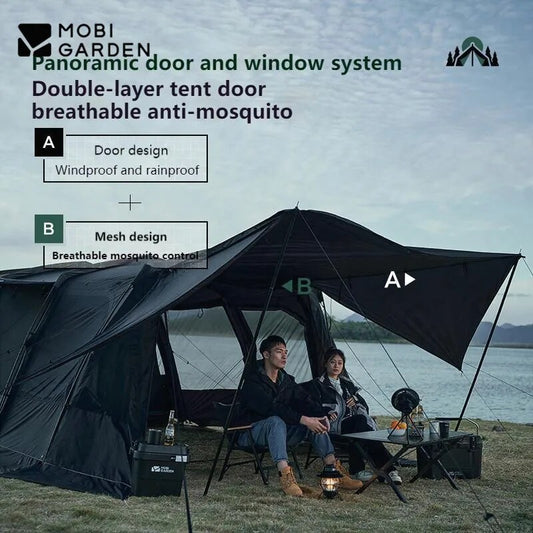 Mobi Garden RANGE ROVER Series 4 Rods Black Tunnel Type Camping Tent 23.1m² Extra Large Space for 8-10 Person 2 Bedrooms & 1 Living Room Aviation