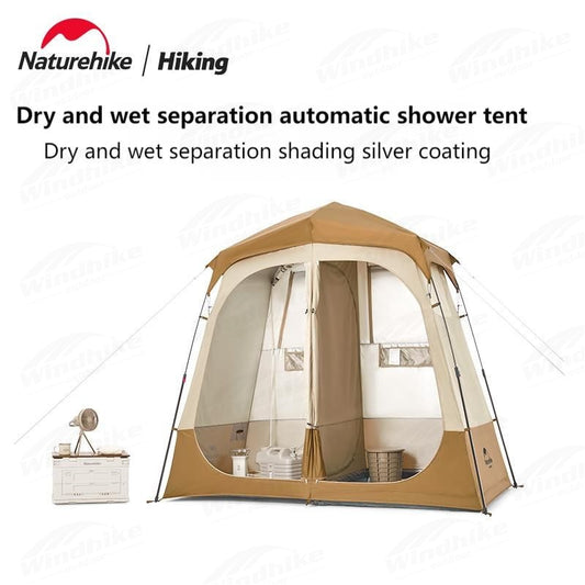 Naturehike Outdoor Camping Beach Tent 210T Automatic Quick Build Poles 2-Way Dry Wet Separation Changing Shower Toilet Comfort Room Multi Purpose Tent