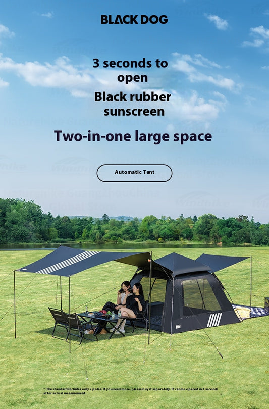 Blackdog CLOUD HOME 6.0 / 13 Automatic Tent Black Coated Sunscreen Quick Opening Ridge Tent Waterproof With Sun Shelter Outdoor Camping