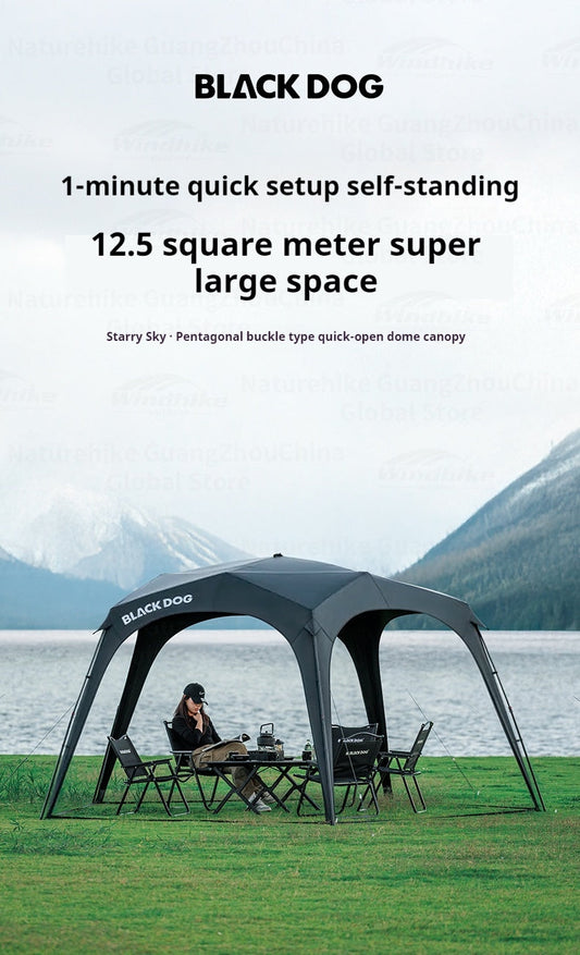 Blackdog STARRY DOME Pentagonal Canopy Hook Version Modular Automatic Quick Open Sunshade Self-Supporting Canopy Outdoor Camping Black Coated Vinyl