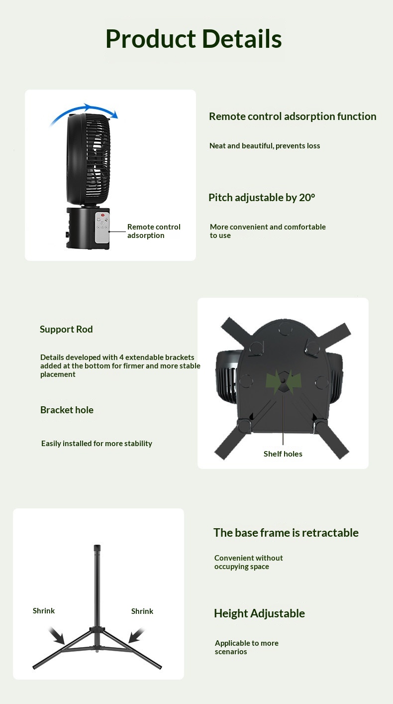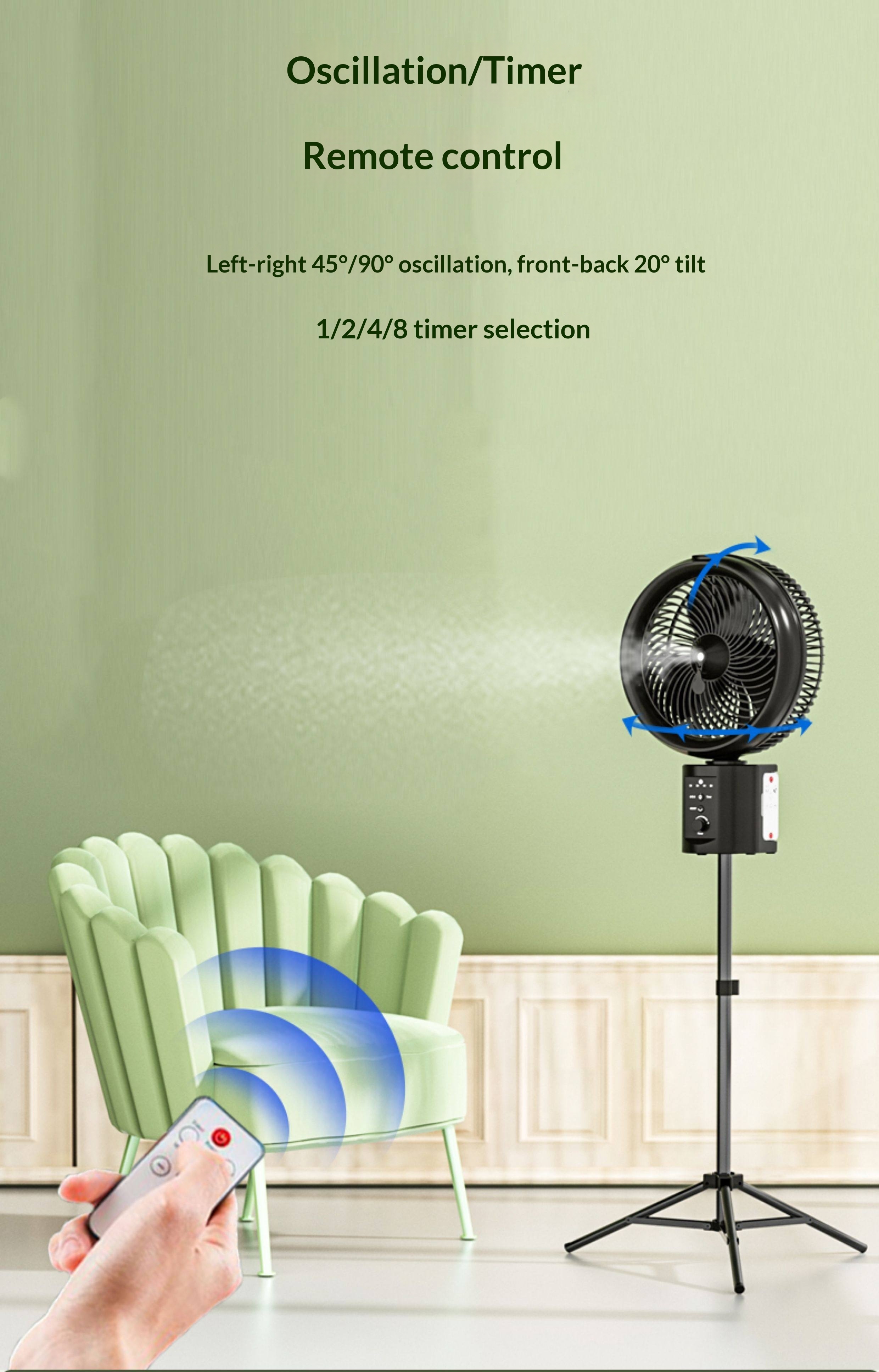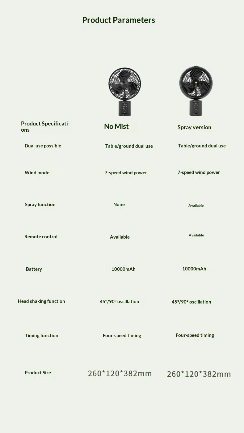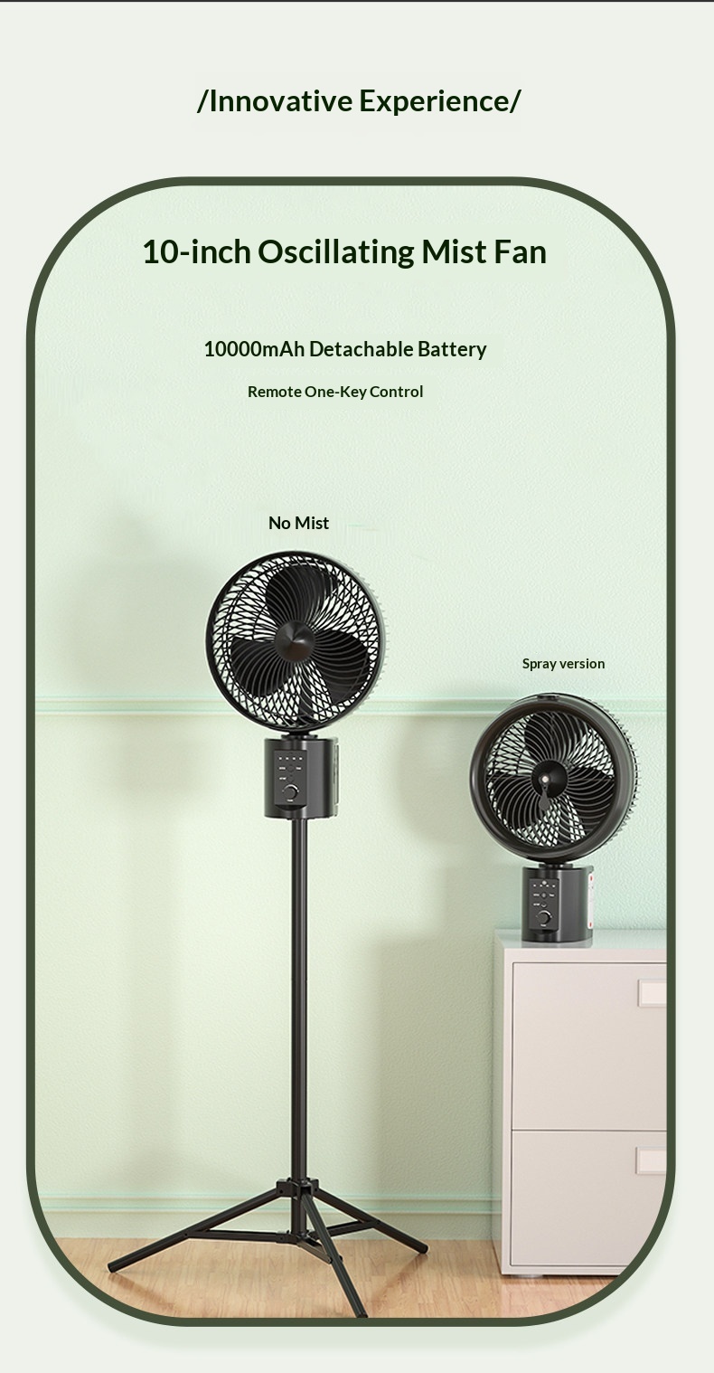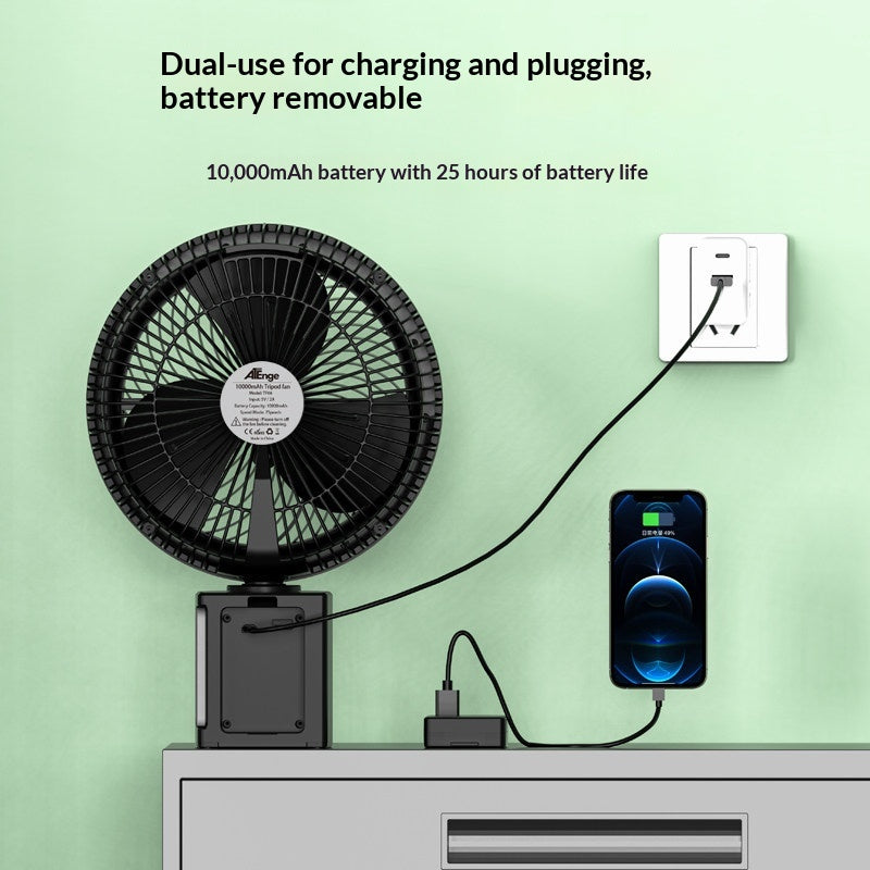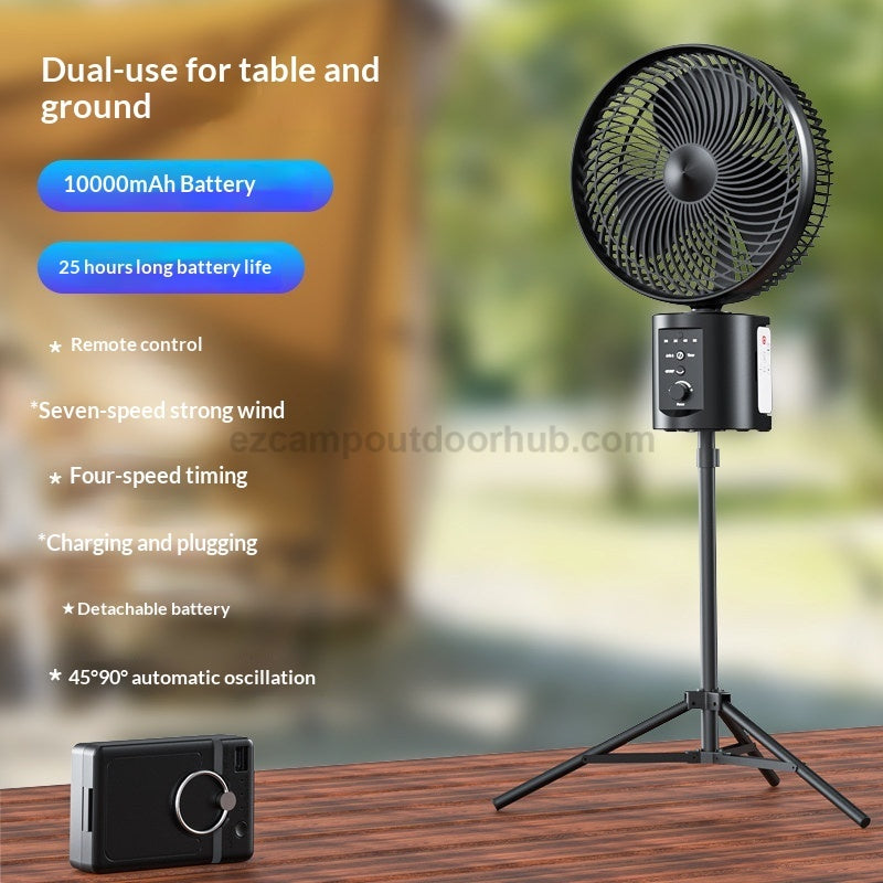 Product Description:Brand: ATEngeProduct Name: Oscillating Rechargeable FanSize: 26x12x38.2 cm EzCampWind Speed: 7Variant: Fan Misting, No MistMaterial: 10000mAh Battery, ABSFeature: Portability, Heavy Duty