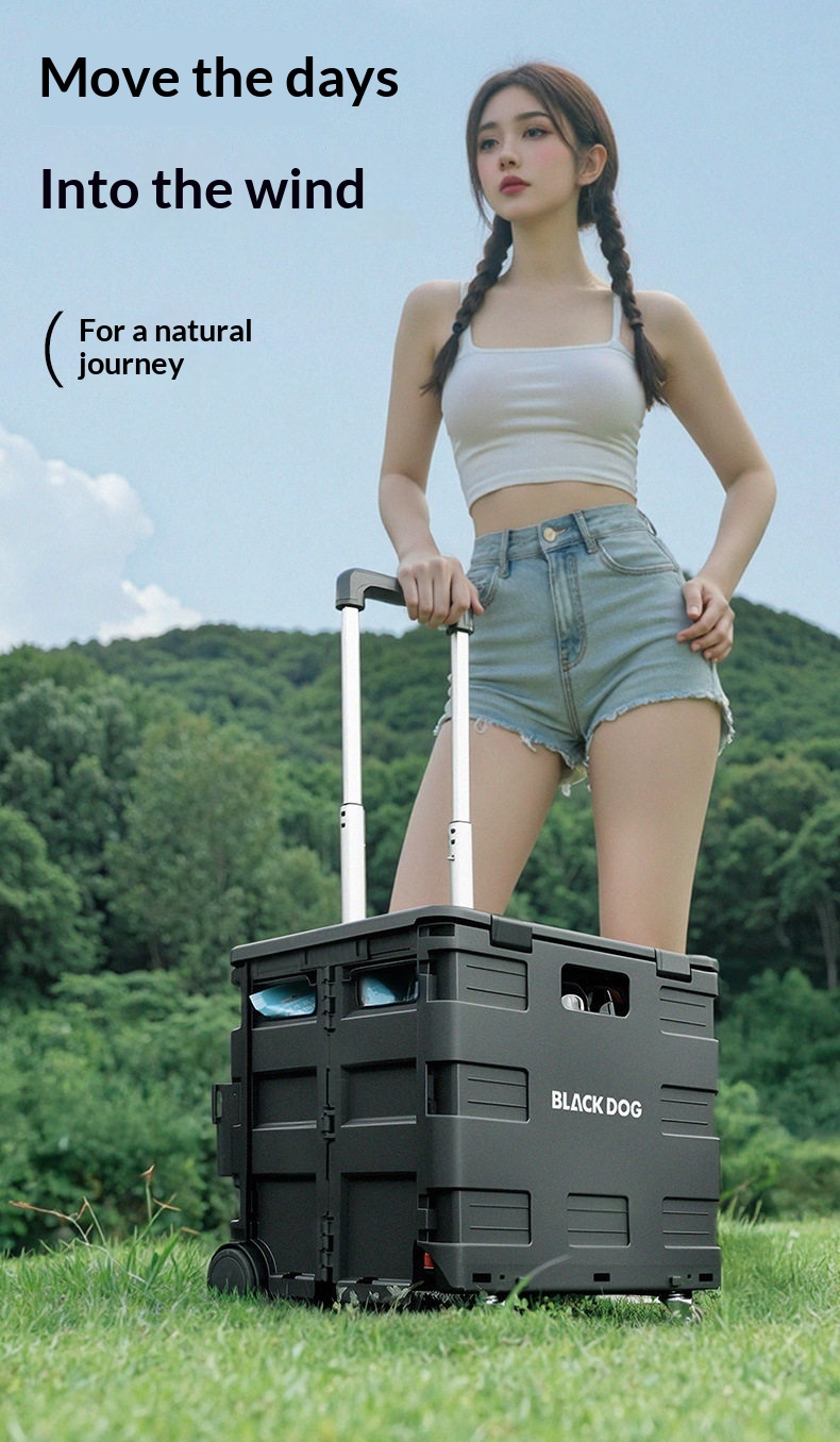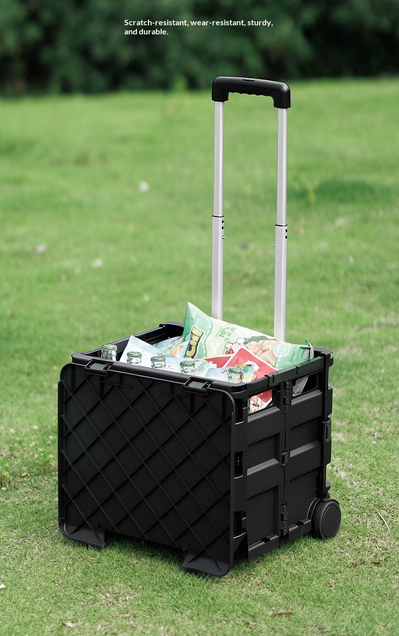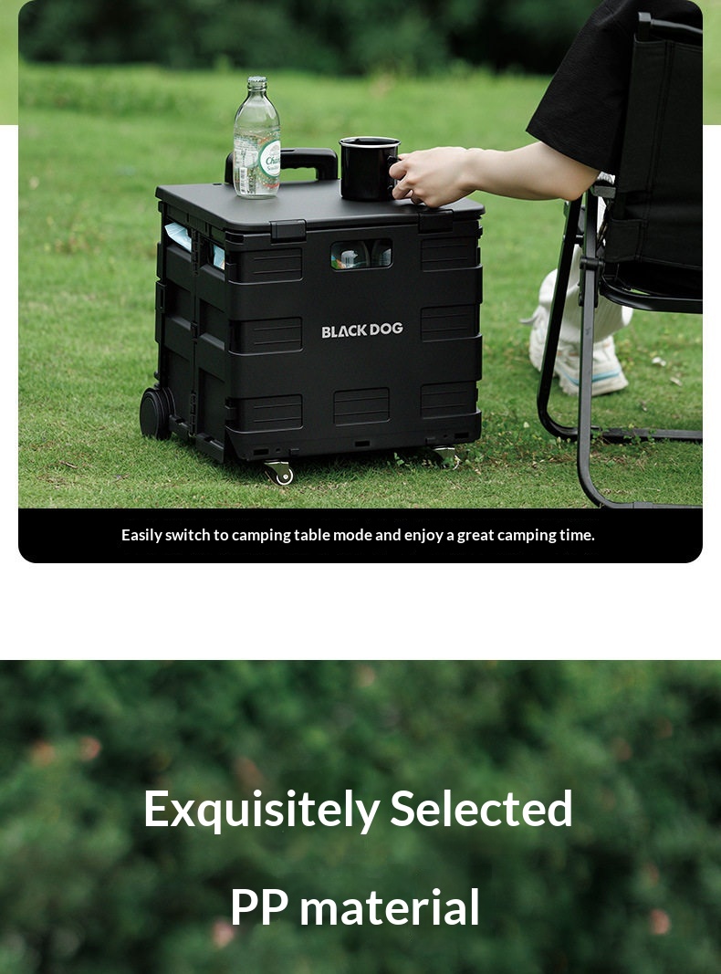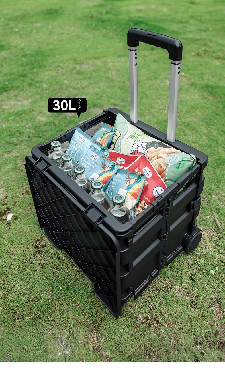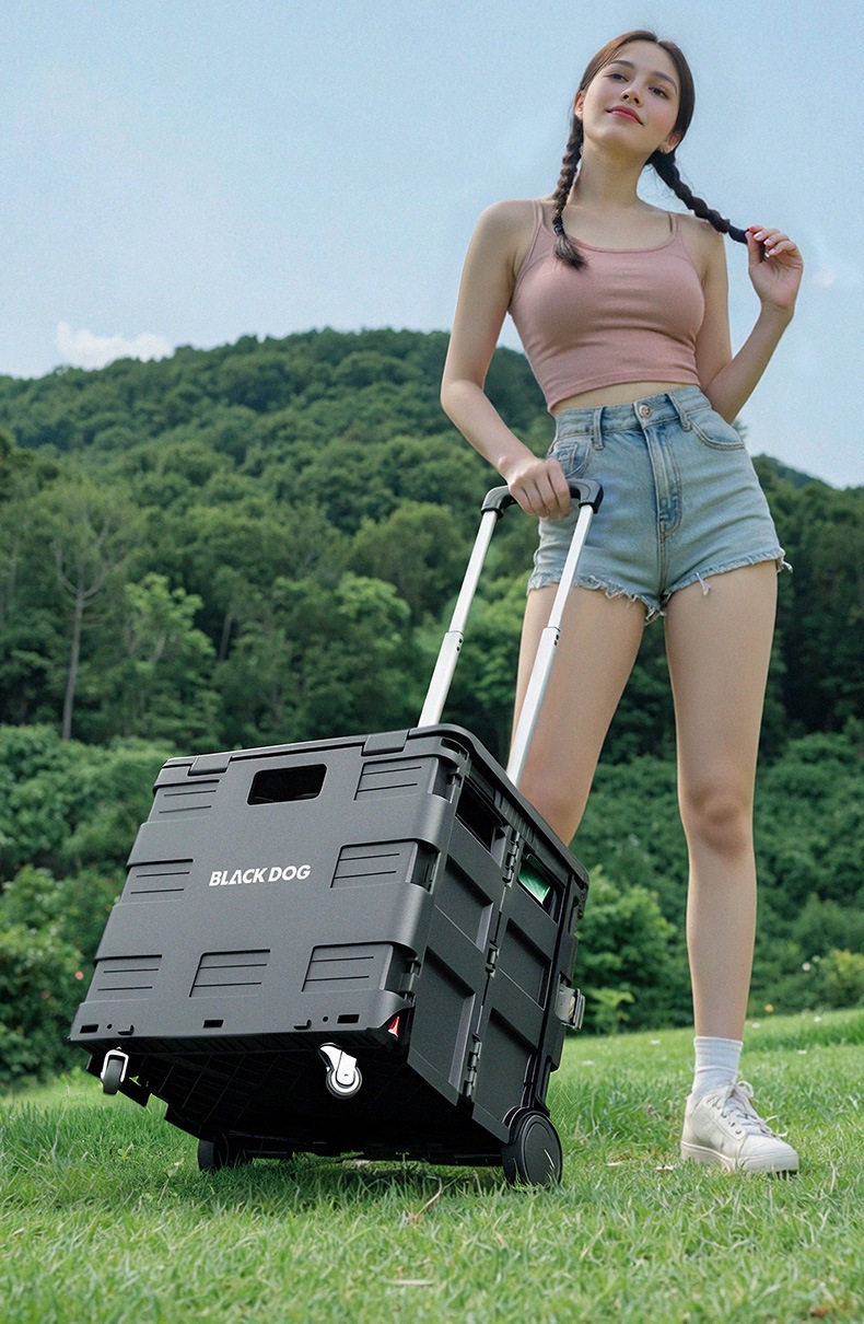 BLACKDOG Black Folding Trolley Portable Lightweight 30-50L Capacity Storage Box Cart With Wheels Pushing Cart Pull Rod Shopping Camping Equipment