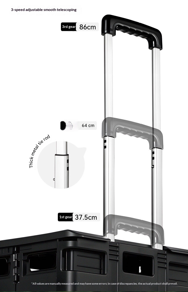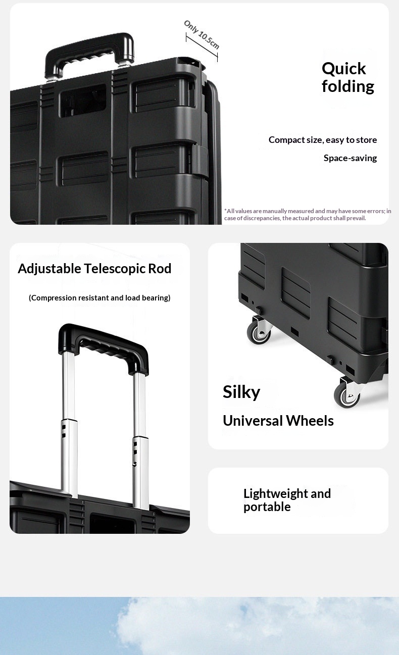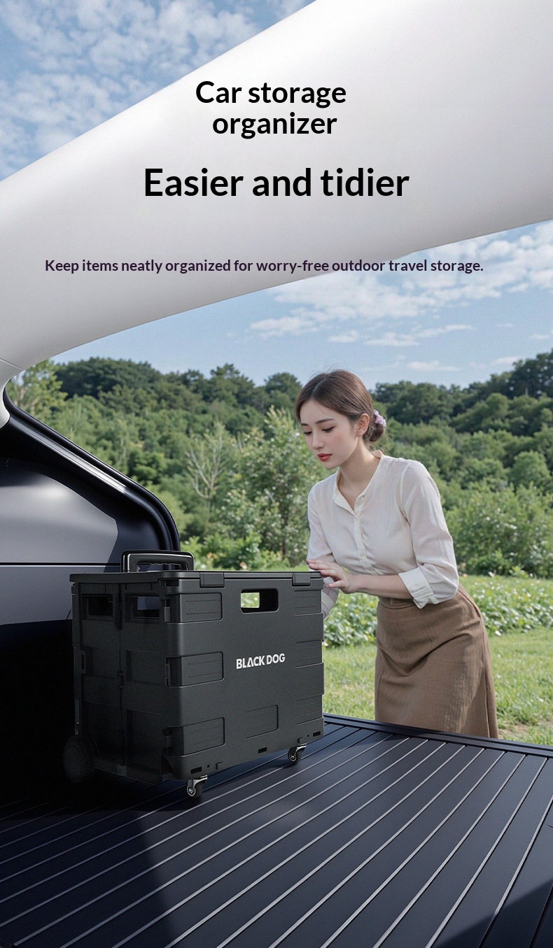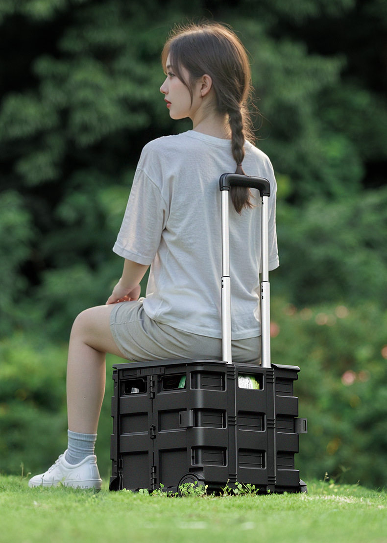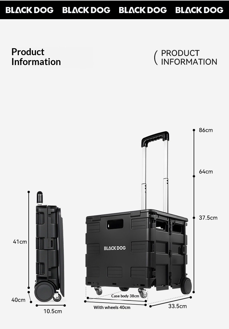 BLACKDOG Black Folding Trolley Portable Lightweight 30-50L Capacity Storage Box Cart With Wheels Pushing Cart Pull Rod Shopping Camping Equipment