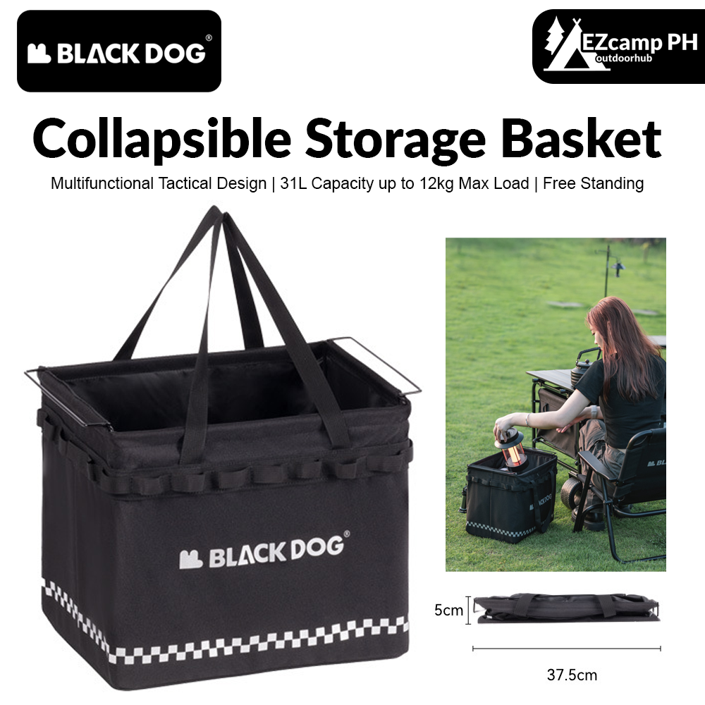 BLACKDOG Black Travel Storage Basket 31L Collapsible Multifunctional Tactical Design Portable Bag 12kg Max Load Outdoor Camping Equipment Folding Foldable Storage Organizer Box Black Dog