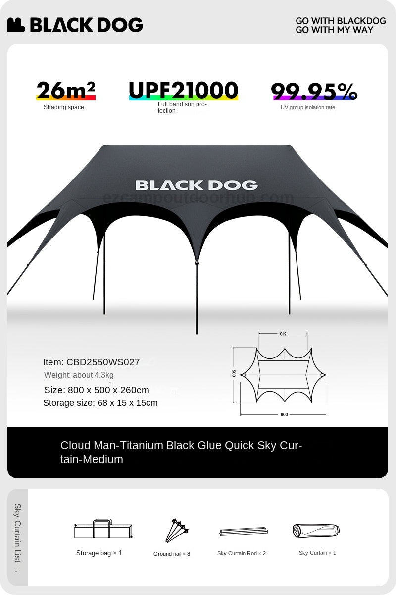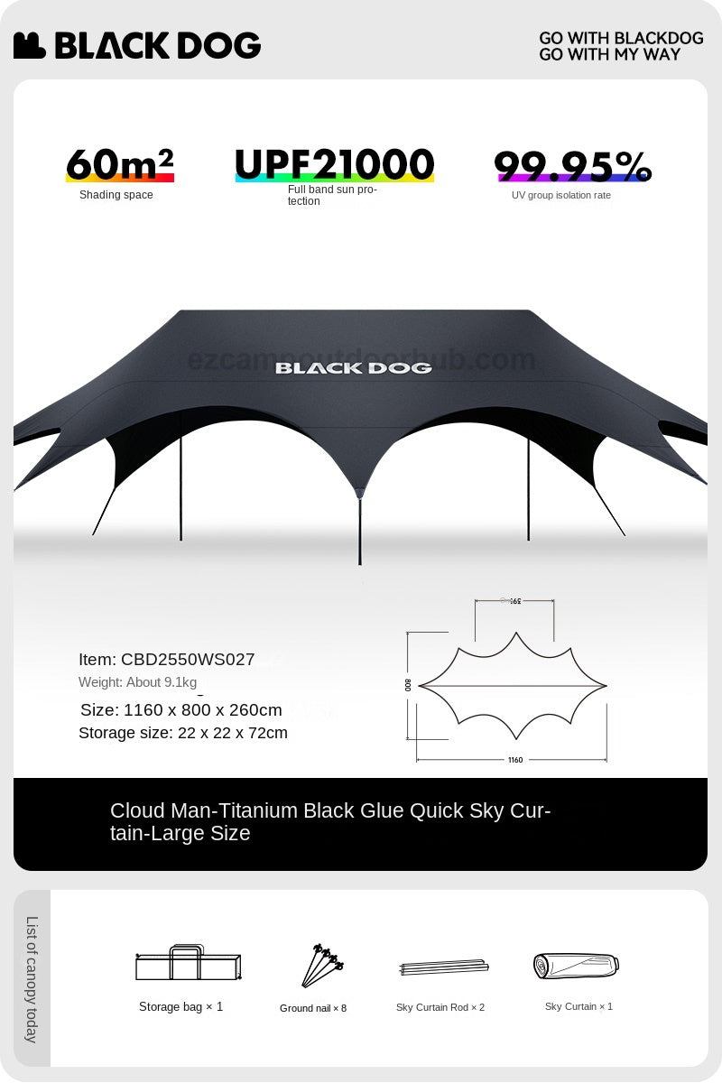 BLACKDOG CLOUDSPAN Black Coated Canopy Portable Multipurpose 26㎡/60㎡ Quick Setup Awning Arched Design Large Sunshade Sun Shelters Tent UPF21000 Waterproof Camping Party Travel