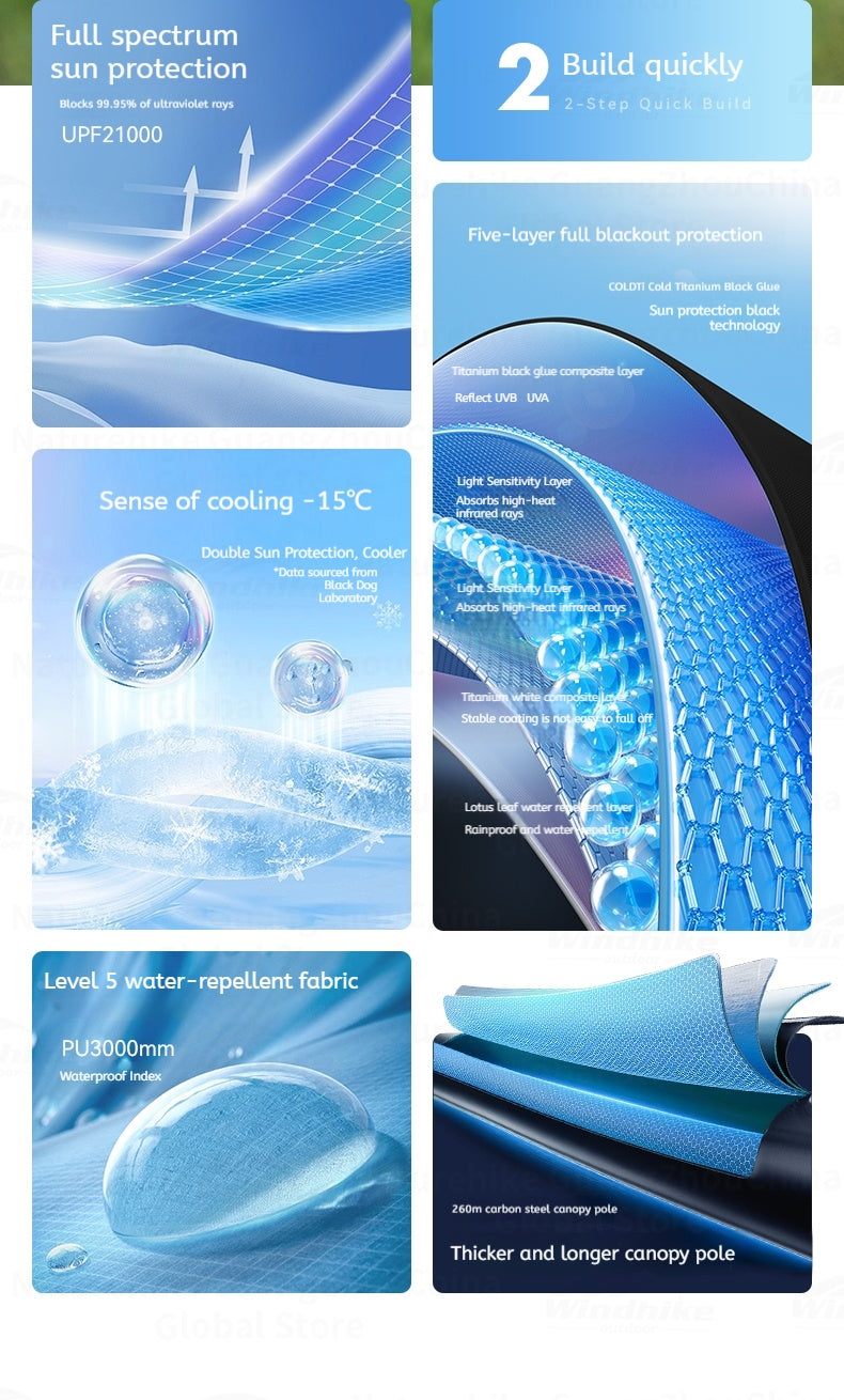 Material: 150D Oxford Cloth(Titanium Black Vinyl), Carbon Steel Canopy Pole