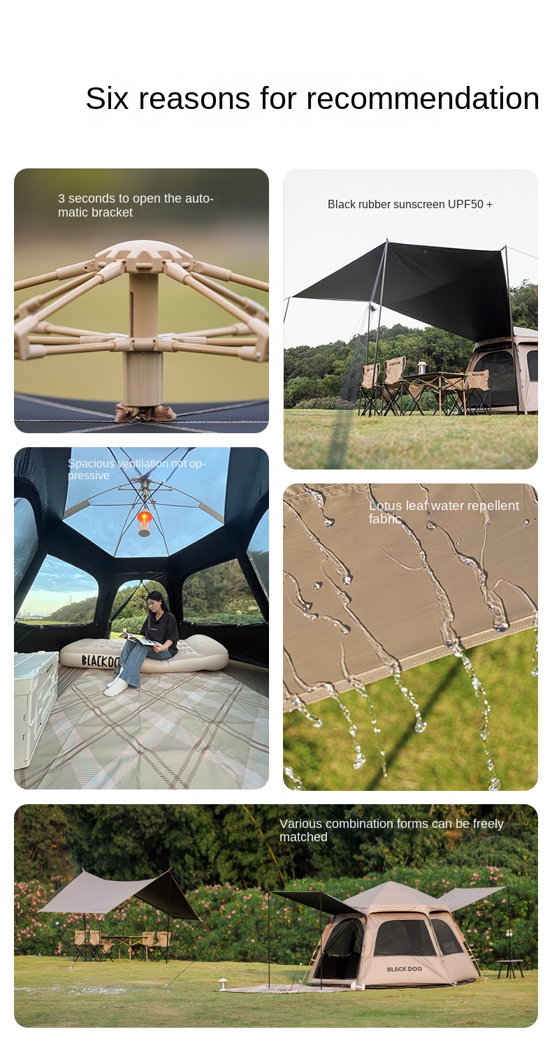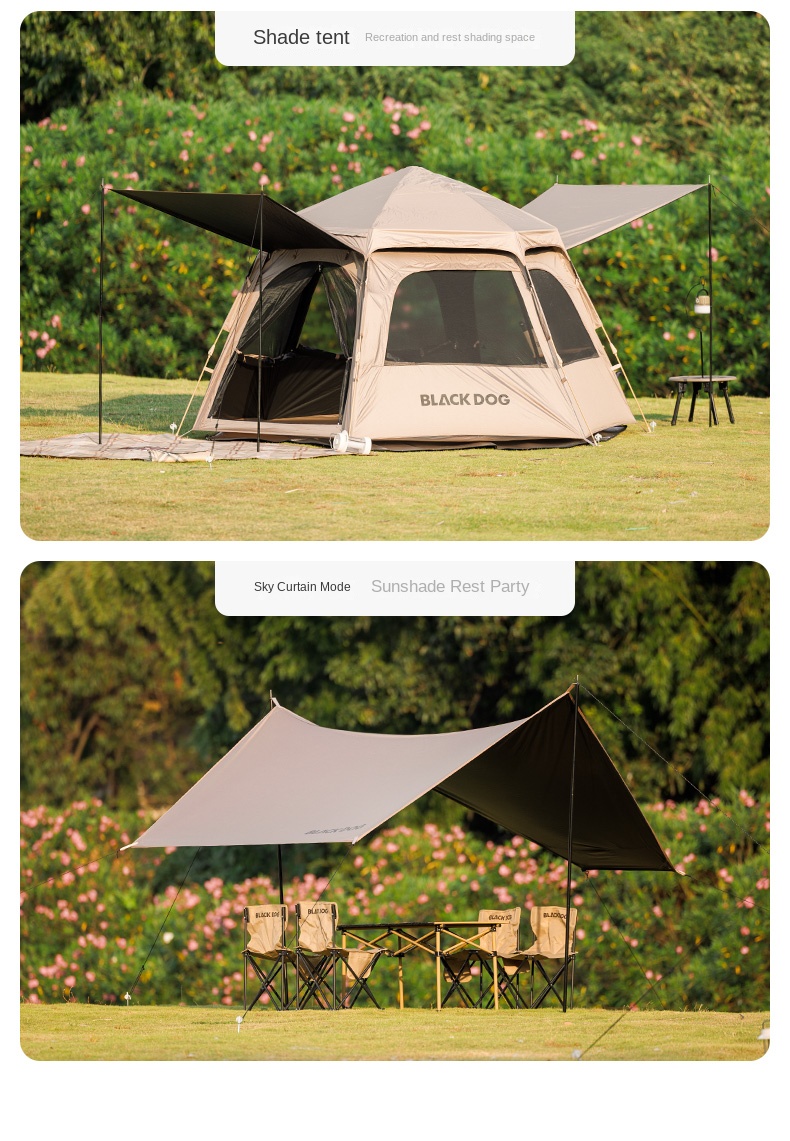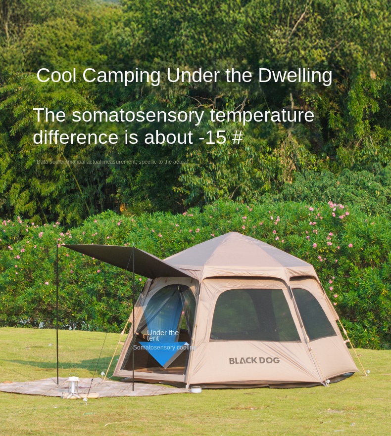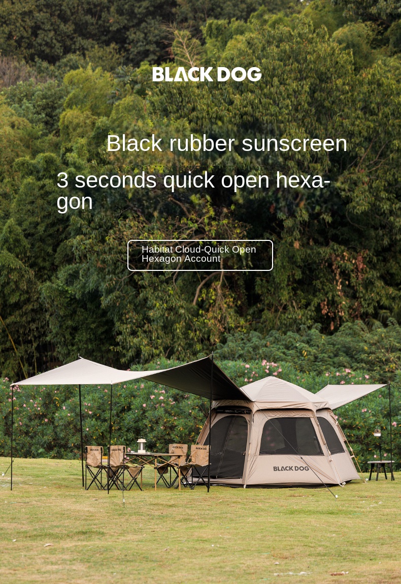 Blackdog COSMIC Hexagonal Automatic Tent 4 Person Dome Style Outdoor Black Vinyl Coated Sunscreen Waterproof Optional Extended Canopy Free Groundsheet