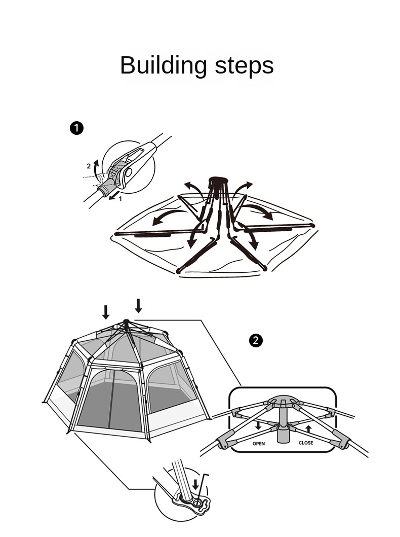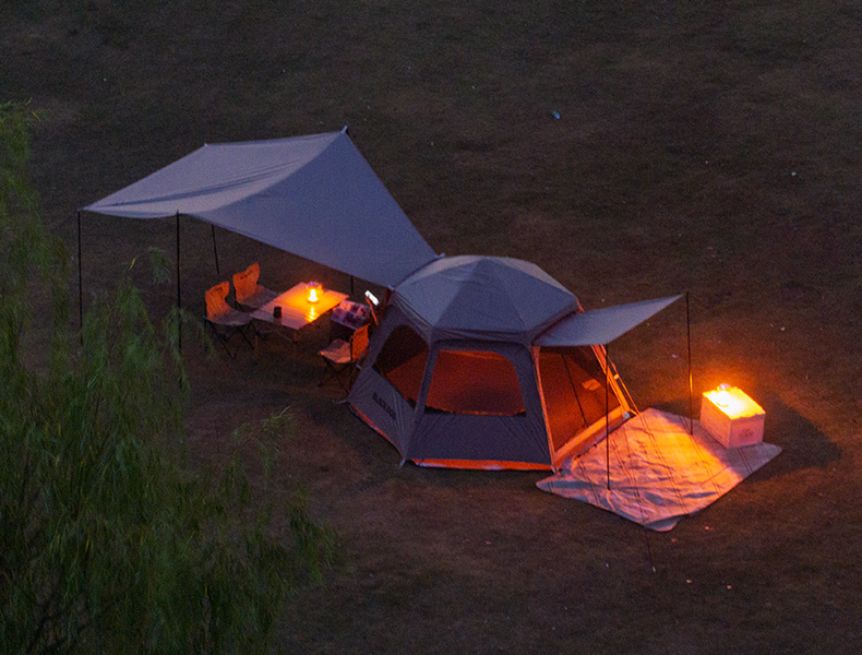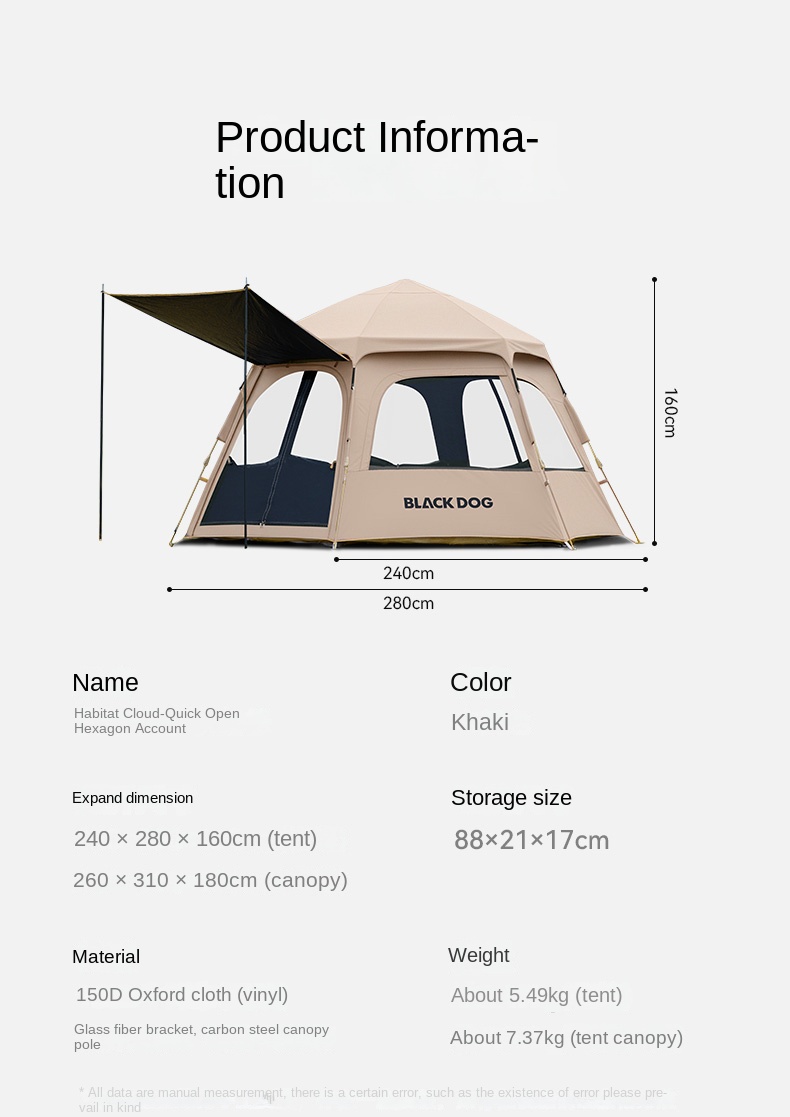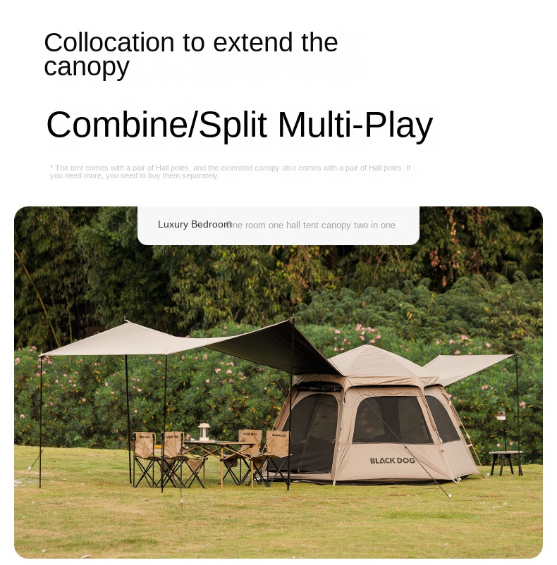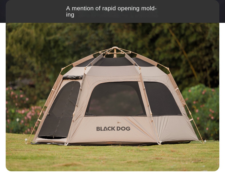 Blackdog COSMIC Hexagonal Automatic Tent 4 Person Dome Style Outdoor Black Vinyl Coated Sunscreen Waterproof Optional Extended Canopy Free Groundsheet