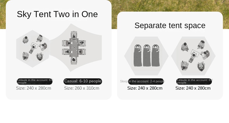 Size: 240x280x160 cm (Tent) / 260x310x180 cm (Canopy) EzCamp