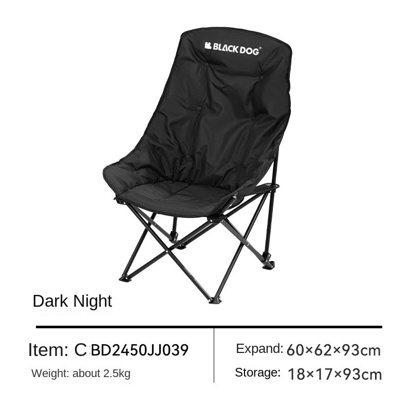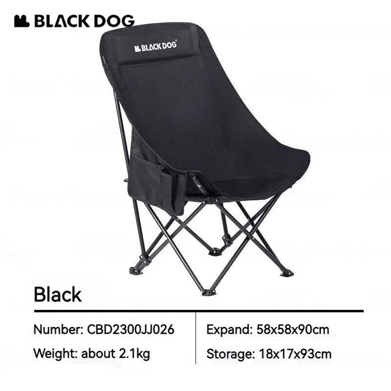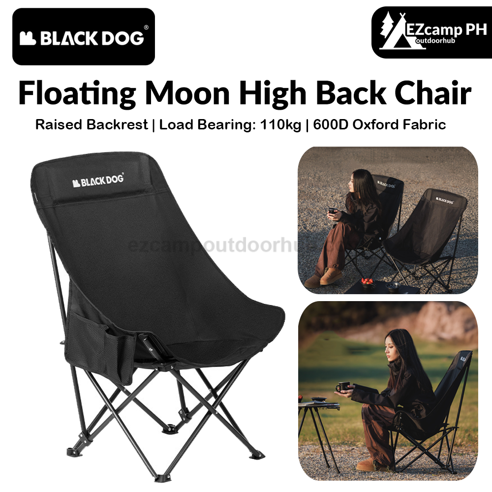 BLACKDOG Floating Moon High Back Chair Portable Foldable Black Raised Back Camping Hiking Travel Chair With Pockets Load Capacity Up To 110 kg
