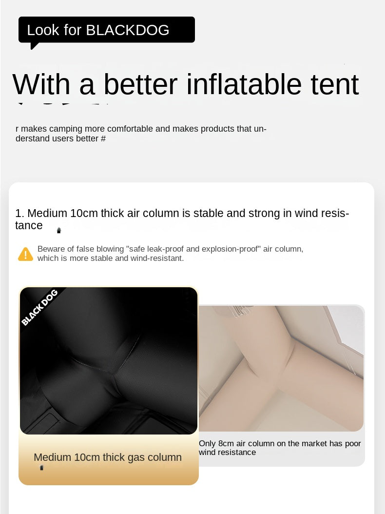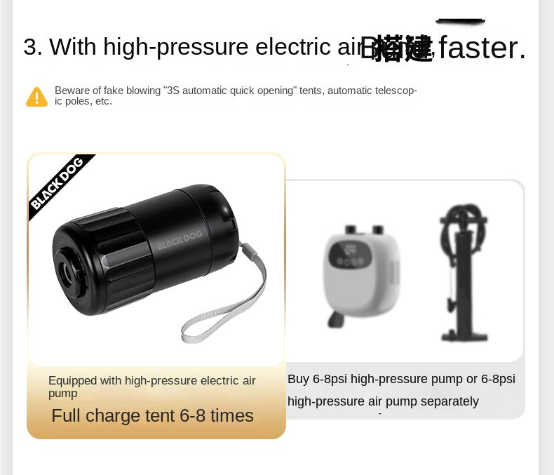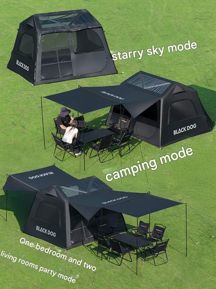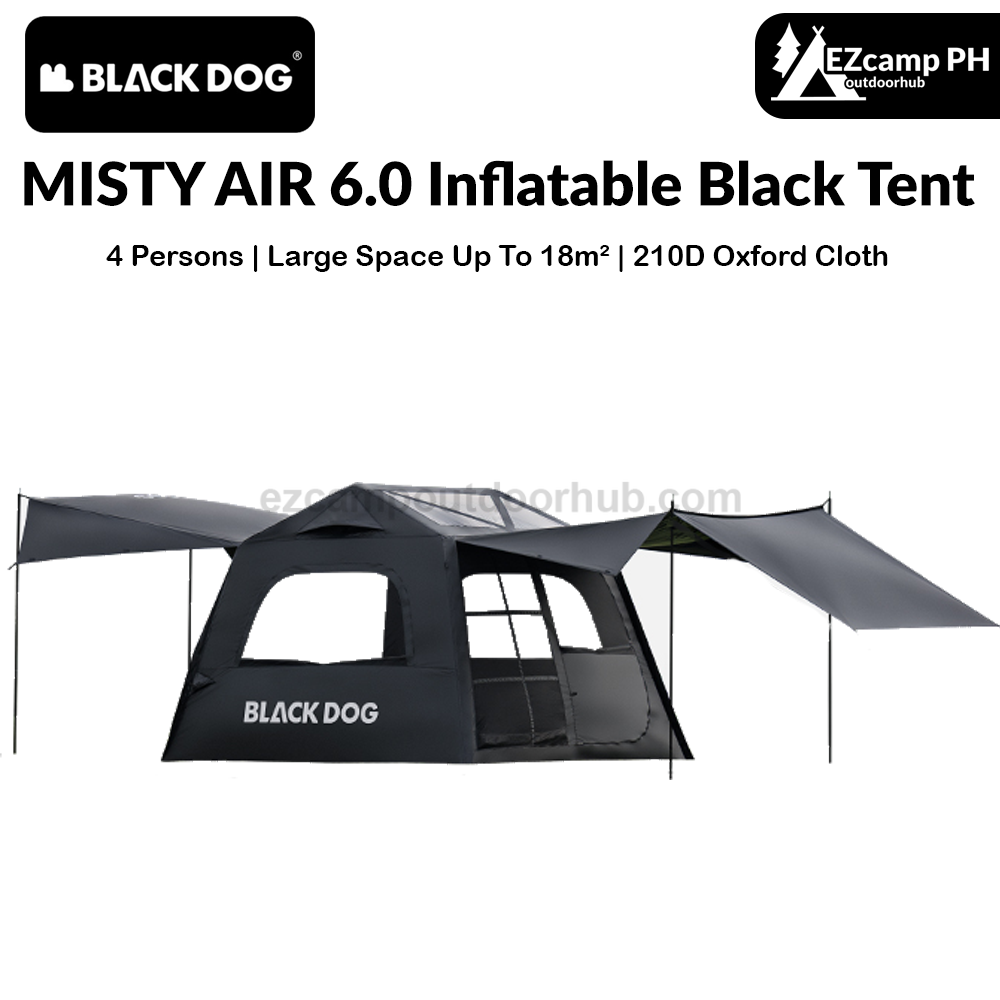 Blackdog MISTY AIR 6.0 Inflatable Black Tent 4 Person Fast Build Built-in Electric Air Pump Large Space up to 18m² Use Vinyl Coated Sunscreen Waterproof Extended Canopy