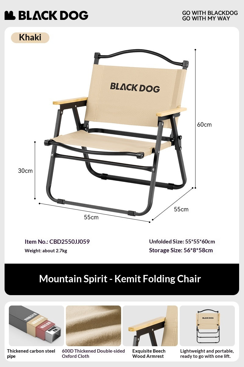 BLACKDOG MOUNTAIN SOUL Black Portable Folding Kermit Chair Travel Ultralight Low High PRO Foldable Chair up to 190kg Max Load Thick Carbon Steel Frame