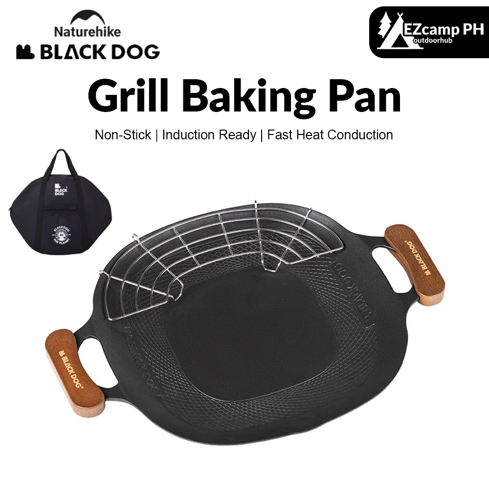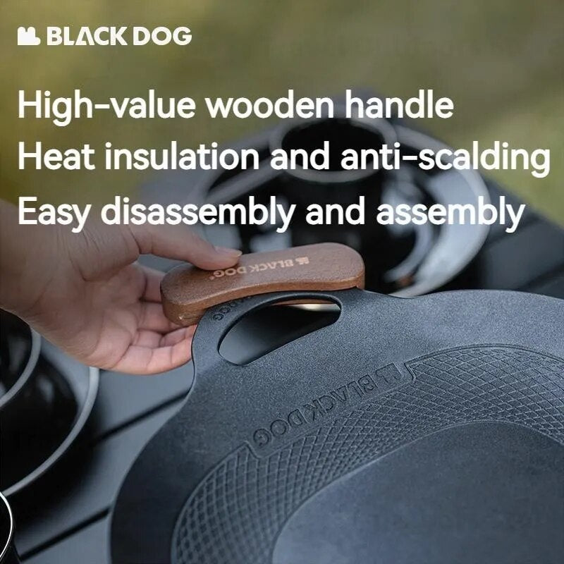 BLACKDOG Round Baking Pan Stove Grill Top Non-Stick Frying Grilling Korean BBQ Cookware Outdoor Camping Picnic Induction Ready Wood Handle with Bag Cooking Barbecue Equipment Utensil Black Dog