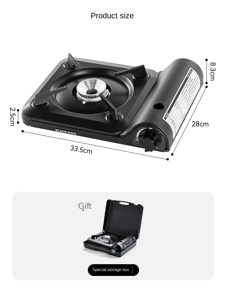 Blackdog Super Slim Black Canister Stove Portable Outdoor Camping Gas Cassette Burner 3300W Firepower Magnetic Valve Nozzle Butane With Storage Case